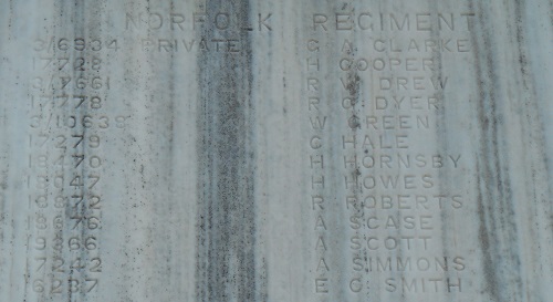 However, that doesn’t mean that the Regiment wasn’t represented in the BSF. On my trip to the Doiran Memorial in 2016 I was struck by a number of panels listing, in all, 18 men from the Norfolk Regiment who have no known grave.