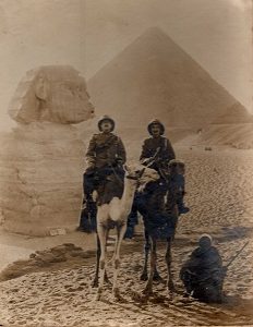 Before serving in Salonika John was in Egypt, where a camel ride by the pyramids was a ‘must do’ experience. It may have made him glad that he only had to work with mules and horses – not camels too!