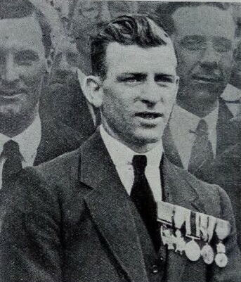 If Stokey ever owned one of these badges, he wasn’t wearing it at the unspecified event captured in the following press photo – but if you’re wearing the actual V.C. that would be overdoing it!
