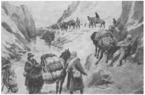 Scottish nurses retreating with the Serbian Army over a dangerous mountain road.