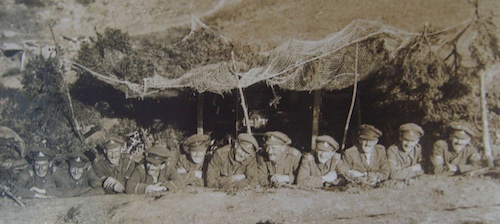 - Official photograph of Gunners taking a break at their gun pit, 1916; Robin Braysher’s collection.
