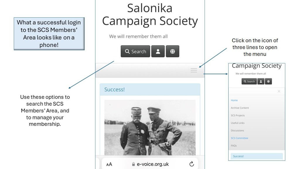 We’re pleased to say that the new Members’ Area is now live! It can be reached here. Please read on for details of how to access the site, what is offers, how it is provided, and its Privacy Policy. Many thanks to those members of the Society who have tested the site and fedback thoughts.