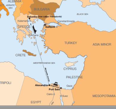 When it departed from Alexandria on 19 October, it carried medical personnel, British troops, over 500 mules, and ammunition. Although accompanied by a French destroyer during part of the journey, the escort departed the day before the attack.