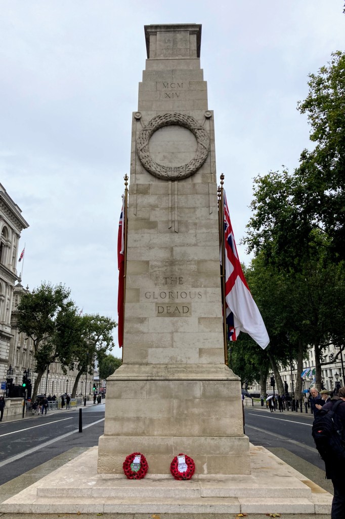 Wreaths laid by members of the SCS at the Cenotaph, Whitehall, on Saturday, 2nd October 2021. A grey day for the annual ceremony at The Cenotaph, London